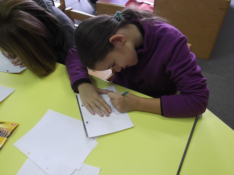 Vendredi, le groupe de dessin (Odélia, Lalou, Andréane, Louis, Kélig et moi) a choisi le thème du ballon. Il y avait un Marsupulami, un chien et un ciseau.