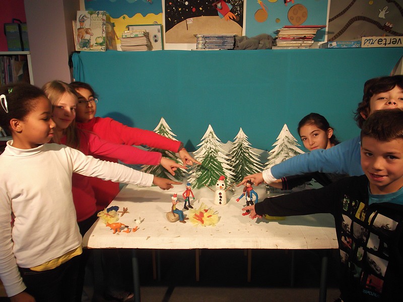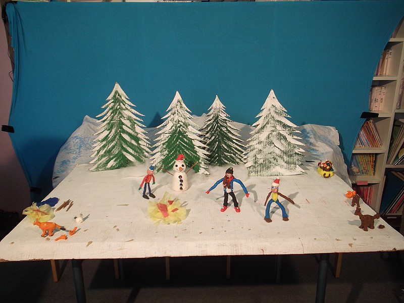 Vendredi, nous avons fait du cinéma d'animation avec de la pâte à modeler. Nous avons créé le décor puis le texte. Nous avons choisi le thème de l'hiver.